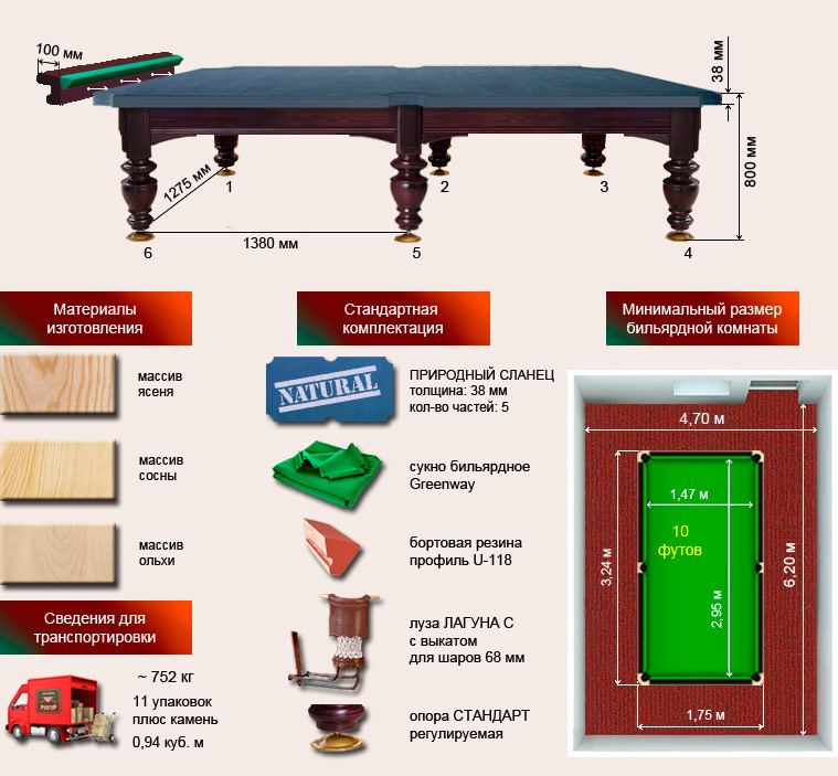 Стандартная модель бильярдного стола "Консул" представлена в одном цветовом решении (37/3).